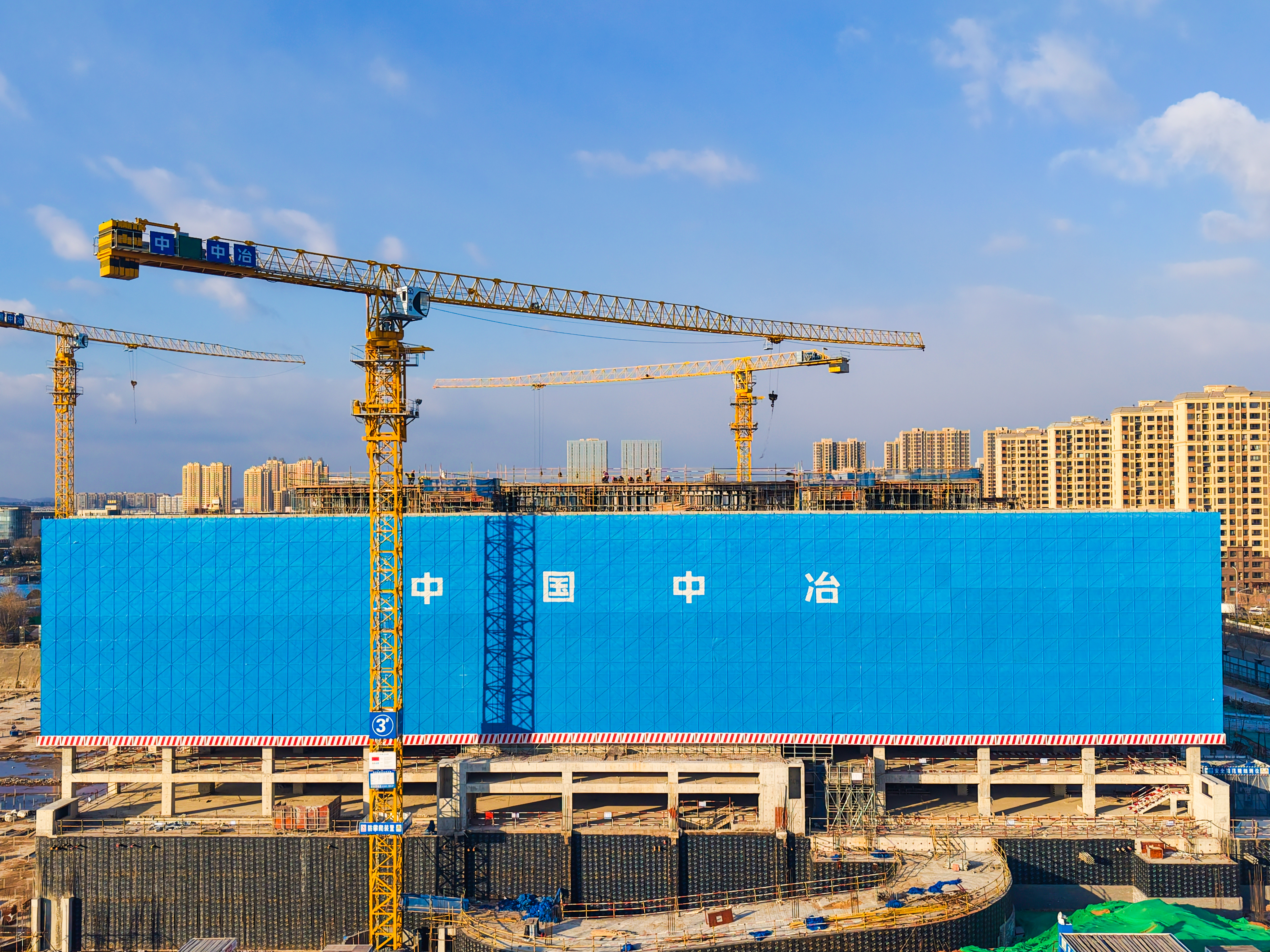 萊陽市民文化綜合體項目位于山東省萊陽市富山路北側,建設內容包括文化展示中心,下沉廣場,創意協同中心,總用地面積為14.51萬平方米,其中文化展示中心總建筑面積5.8萬平方米,地上建筑面積為3.5萬平方米。自開工以來,項目部緊抓進度、嚴控質量、確保安全,堅持策劃先行,以質量控制為核心,始終貫徹安全發展理念,嚴格實行精細化管理,狠抓安全質量體系建設、風險管控和隱患排查,同時優化施工節點,積極協調施工人員、生產材料、機械設備,迅速形成大干的局面,順利實現主體結構如期封頂。