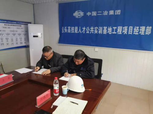 會上,包頭市人社局技能鑒定指導中心主任朝格圖與中國二冶包頭市實訓基地項目部項目經理萬逸男代表雙方簽訂《安全質量責任書》。