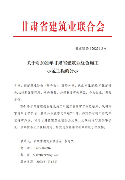 1月12日,甘肅省建筑業(yè)聯(lián)合會公布“2021年甘肅省建筑業(yè)綠色施工示范工程”評審結(jié)果,中國二冶蘭州柴家峽黃河大橋工程榜上有名,標志著該項目部推進“綠色施工示范工程”創(chuàng)建工作取得開門紅。