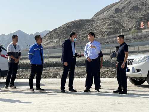 嘉峪關(guān)市交通運(yùn)輸局局長齊新明;甘肅公航旅酒嘉管理公司董事長陳勝軍;中國二冶酒嘉繞城高速公路項(xiàng)目負(fù)責(zé)人陪同檢查。
