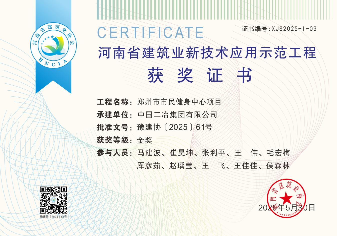 6月4日,中國二冶承建的鄭州市市民健身中心項目榮獲2025年“河南省建筑業(yè)新技術應用示范工程”榮譽稱號。